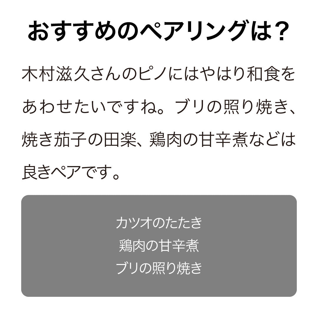 淡い色調ながらも芯の強さと果実味のあるこのピノは、和の旨みとマッチすると思います。