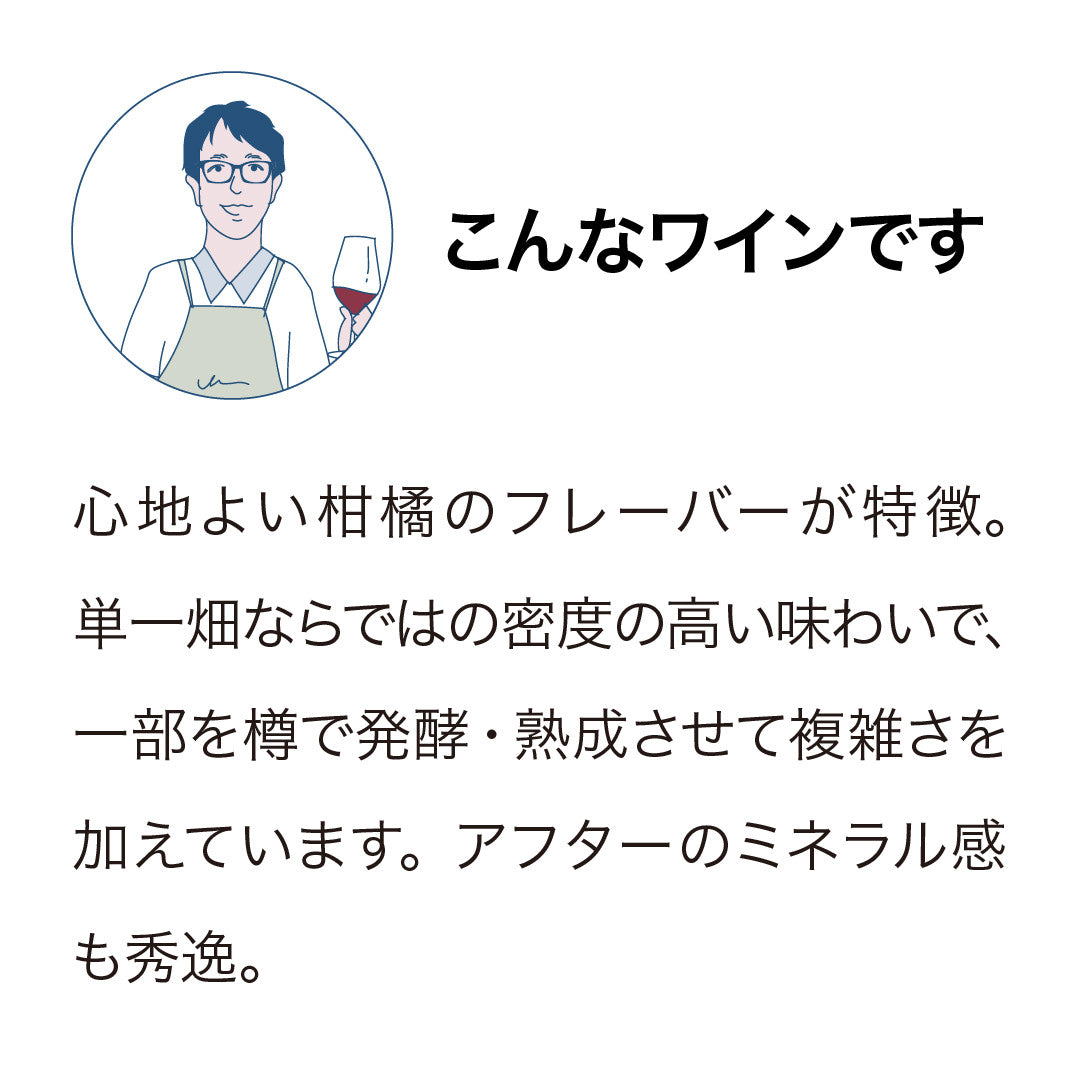 他の畑産のワインを混ぜることなく、選りすぐりの一画からのみ造られるこのワインは、ワイナリーが理想とする方向性がはっきりと映し出された銘柄であると言えるでしょう。