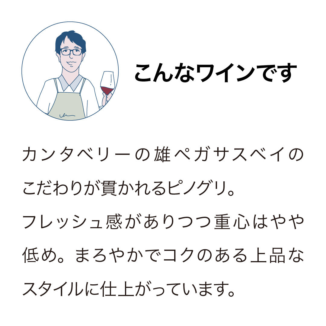 カンタベリーの雄ペガサスベイのこだわりが貫かれるピノグリ。フレッシュ感がありつつ重心はやや低め。まろやかでコクのある上品なスタイルに仕上がっています。